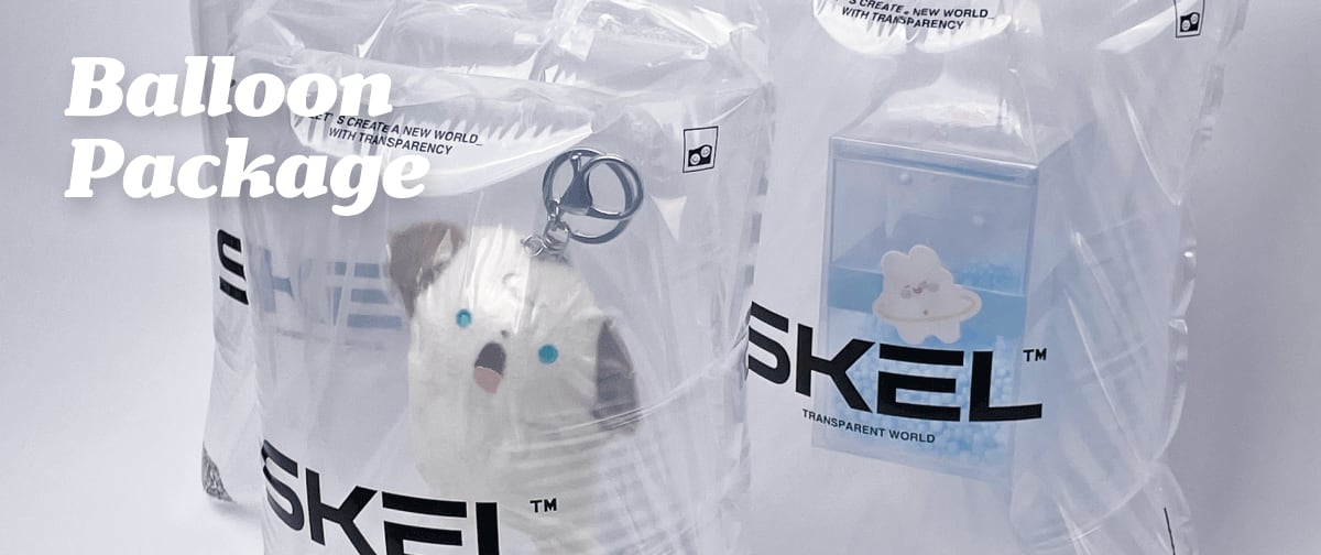 バルーンパッケージ https://transparent.skel.jp/p/00002 まるで風船のようなバルーンパッケージ。 バルーンパッケージは4層のフィルムから作られています。膨らませると2つの内層フィルムがくっつき、商品を360°から覆い、パッケージの中心に製品を浮かせます。 インテリアやギフトにもピッタリです。 SKELオリジナルデザインのバルーンパッケージを是非お試しください。 ⚫︎商品詳細 【サイズ】 空気を入れる前:約25×30cm 空気を入れた後:約25×18×14cm ※空気の注入具合によってサイズは変化します。参考までにご覧ください。 【主な素材、原料】 PE(ポリエチレン)+PA(ナイロン) 丈夫で厚みのある素材で、注入された空気によって衝撃を吸収し、外部からの圧力に耐えます。 【ご使用方法】 https://transparent.skel.jp/p/00002 1.バルーンパッケージに商品を入れます。 2.空気注入口から空気を入れます。空気入れや、ストローで膨らますことができます。 3.バルーンパッケージ内の空気がいっぱいになり、商品が固定されたら空気の注入をやめます。 4.完成 ※ご購入前に必ず「SHOPPING GUIDE」をご確認ください。 ※注入口から細いストローを入れることにより、穴を開けずに空気を抜くことができますが、 ストローを抜く際に注入口のフィルムが裏返る場合がございます。ご注意ください。 ※製品の特性及び測定方法によってサイズに誤差が生じることがございます。 ※製造過程の仕上げ作業段階で発生する微細なキズ・擦れは不良ではございません。 ※ 画像はイメージです。商品ページのデザインや画像の色味が実際の製品と多少異なる場合がございます。あらかじめご了承ください。 ● 商品のお届け時期について 代金のお支払いが確定後、1〜5日以内に国内より発送いたします。 後払い決済の場合は、ご注文確定後、1〜5日以内に発送いたします。 お届け日は、配達状況やお住まいの地域により異なりますが、発送から約1〜3日程度でのお届けとなります。