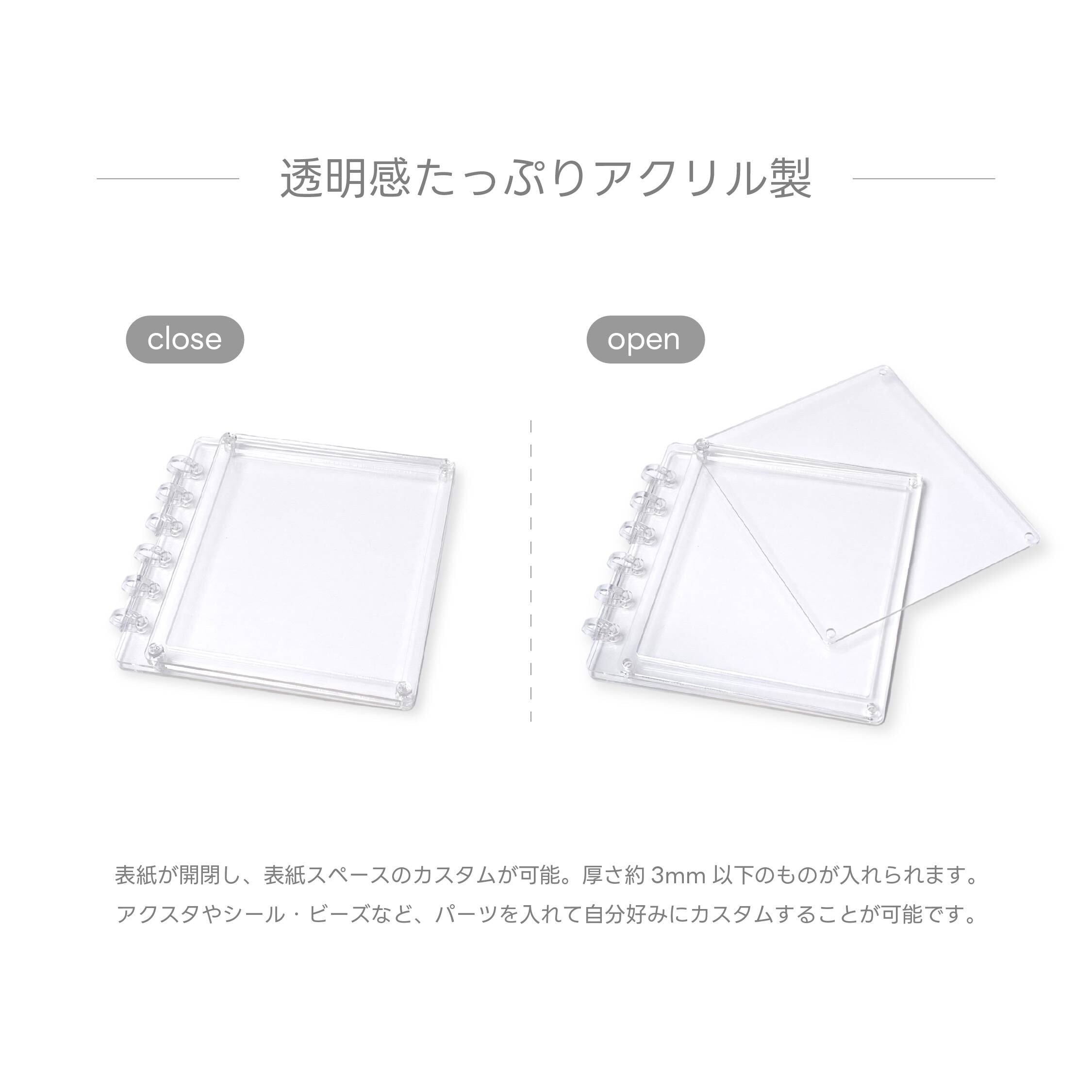 自分好みにアクスタやカードなどを入れて楽しめます。カラフルなアクリルジェリーパーツ&ルーズリーフが付属しています。